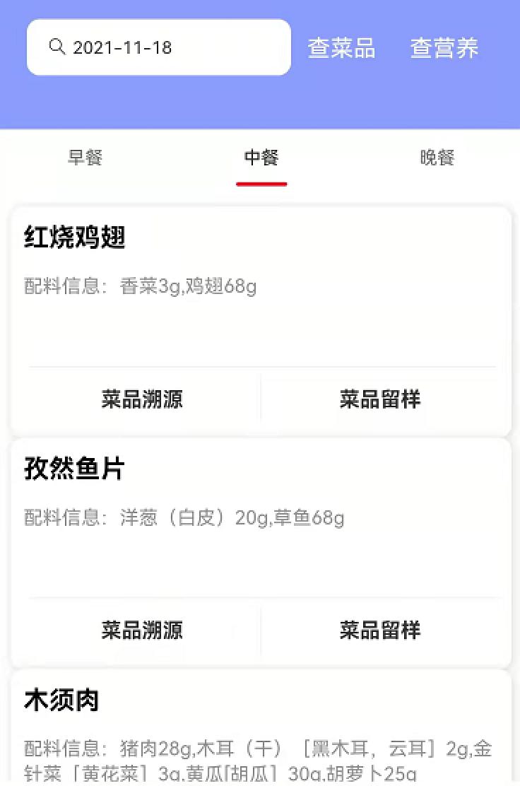 家長(zhǎng)、老師、監(jiān)管人員可實(shí)時(shí)查詢(xún)學(xué)校食堂每日菜品信息及營(yíng)養(yǎng)攝入等情況,還可通過(guò)小程序看到中央廚房的食品生產(chǎn)過(guò)程,做到公開(kāi)、透明。