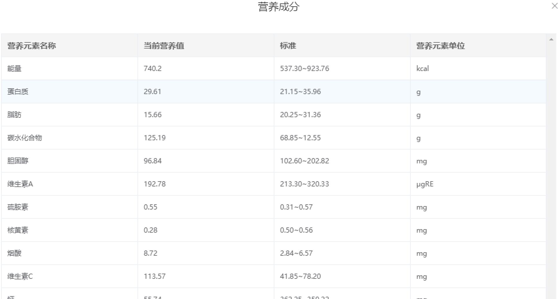 及時(shí)預(yù)警菜品營(yíng)養(yǎng)元素和食材類(lèi)別搭配不均的問(wèn)腿,方便營(yíng)養(yǎng)專(zhuān)員及時(shí)加以應(yīng)對(duì)。