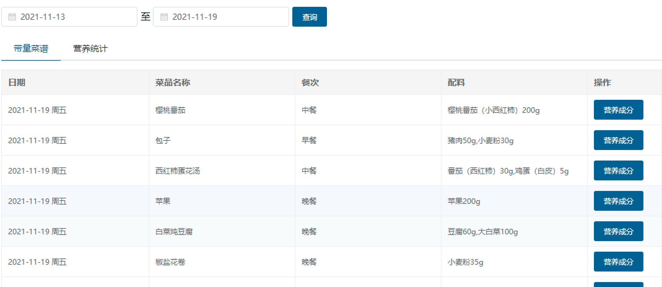 2.每日菜品營(yíng)養(yǎng)分析